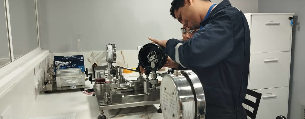 • Presión: Calibración de manómetros, registradores de presión, transductores y transmisores (rango 0 a 14000 psi).